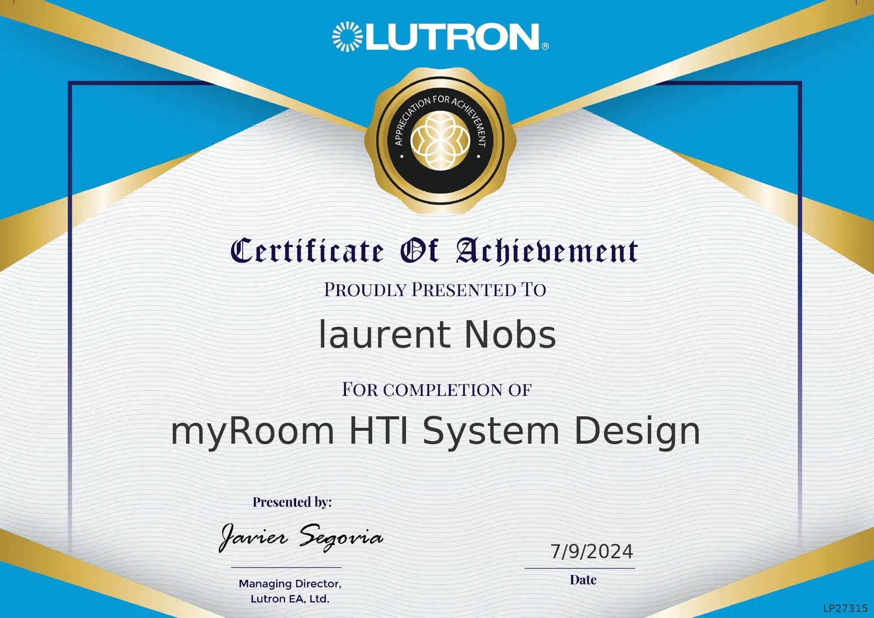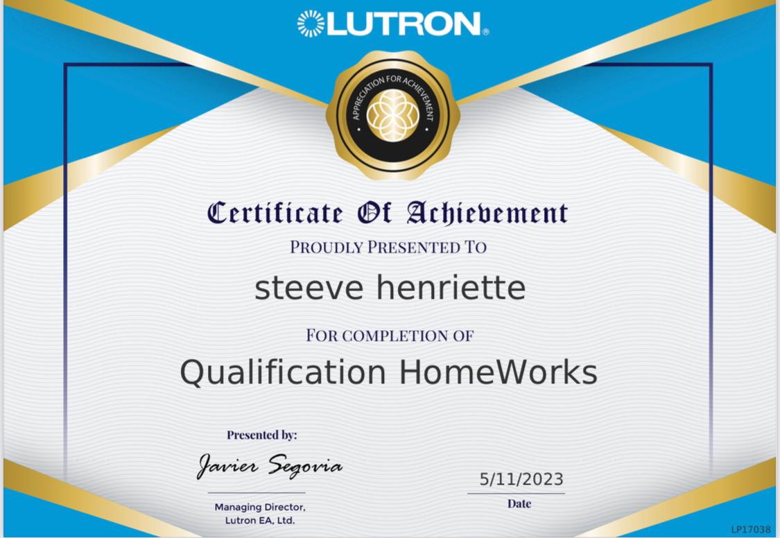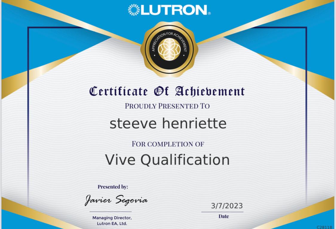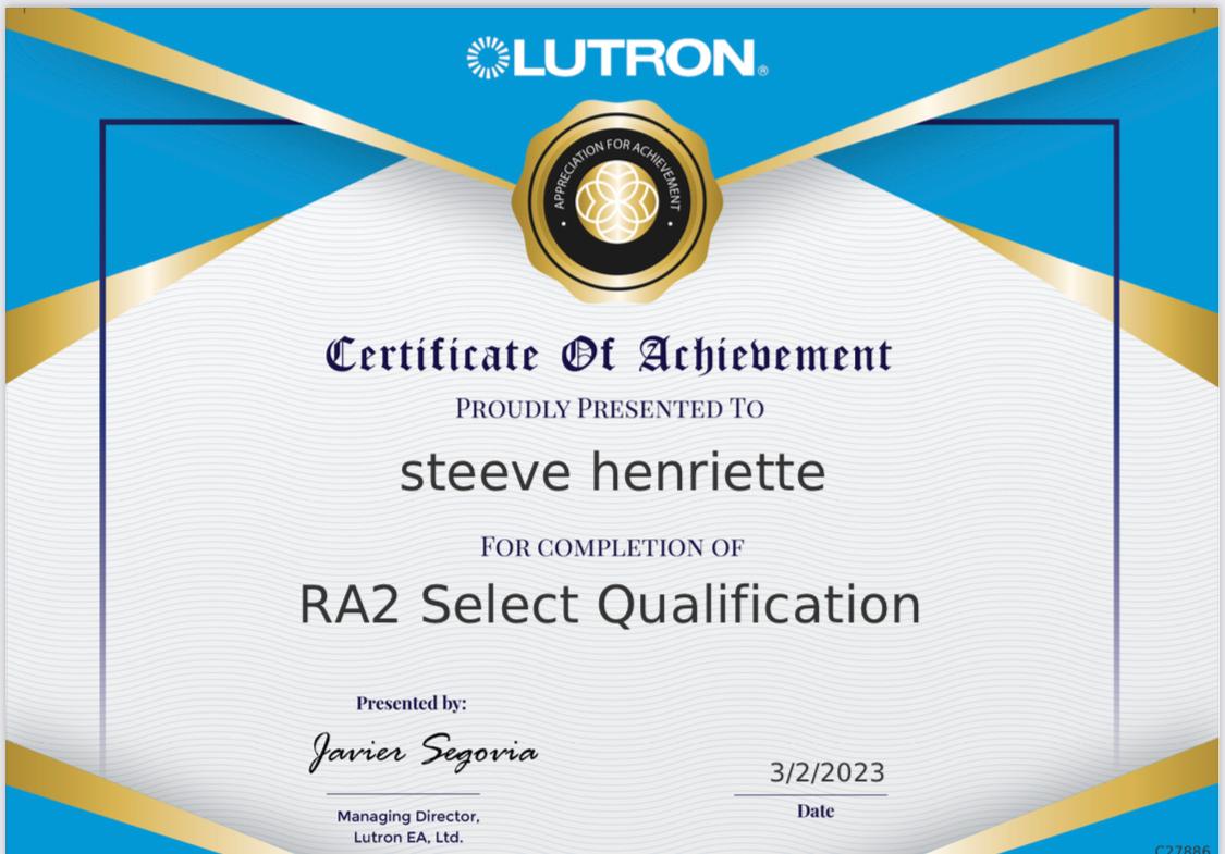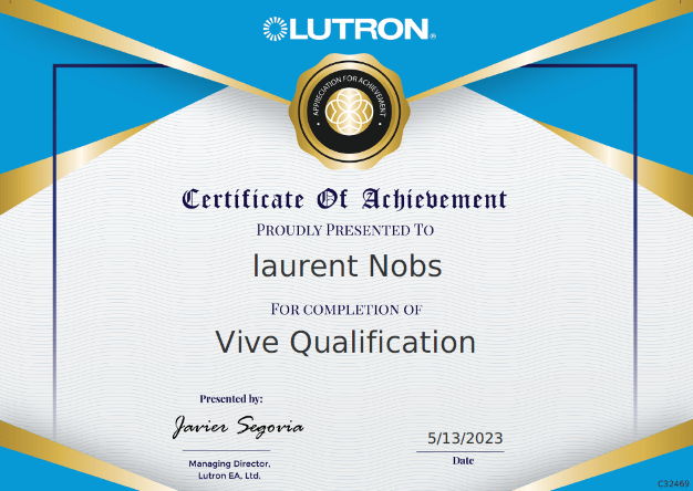 Consultant Lutron, gestion de projet et suivi de réalisation.